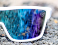 With the CYCLONE model, you'll find a more stylized version with exceptional features. Its white frame and blue lenses will take you to new heights.