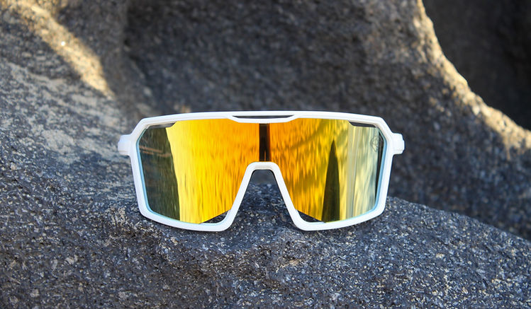 Unleash your passion for adventure with our GOLDEN EYES model. Feel the abundance with its gold lenses and white frame, which not only offer high sun protection but are also extremely impact resistant.