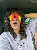 Discover a masterpiece of minimalism and style with our frameless glasses. The black temples with white and red dots, evoking space, combined with gleaming red lenses, create a unique fashion statement.